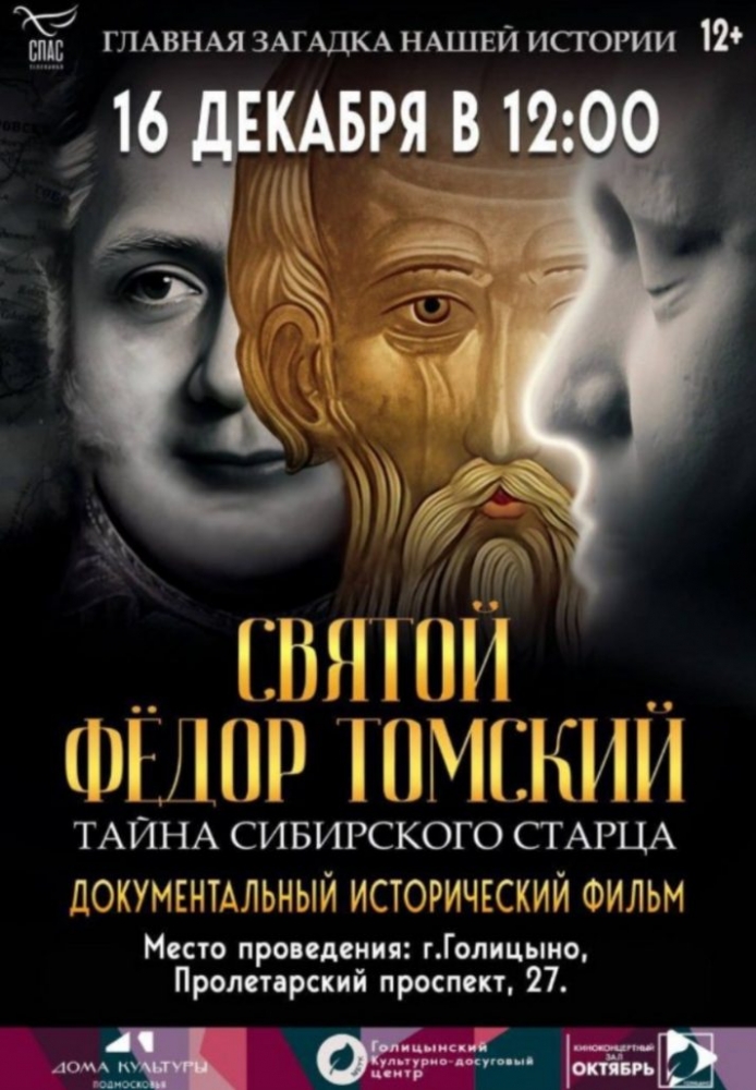 16 декабря 2025 года состоится показ фильма "Святой Федор Томский" в г. Голицыно, единственный сеанс, в Голицынском культурно-досуговом центре. По благословению Архиепископа Одинцовского и Красногорского ФОМЫ афиша размещается на интернет ресурсах приходов и на досках объявлений. Заказ билетов https://clck.ru/3QdALS